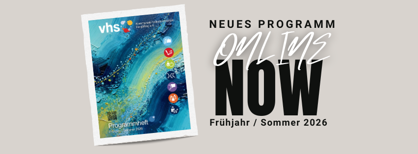 Alle Kurse vom neuen Programmheft sind online!Sichern Sie sich jetzt Ihren Platz in Ihrem Lieblingskurs.Jetzt online buchen!